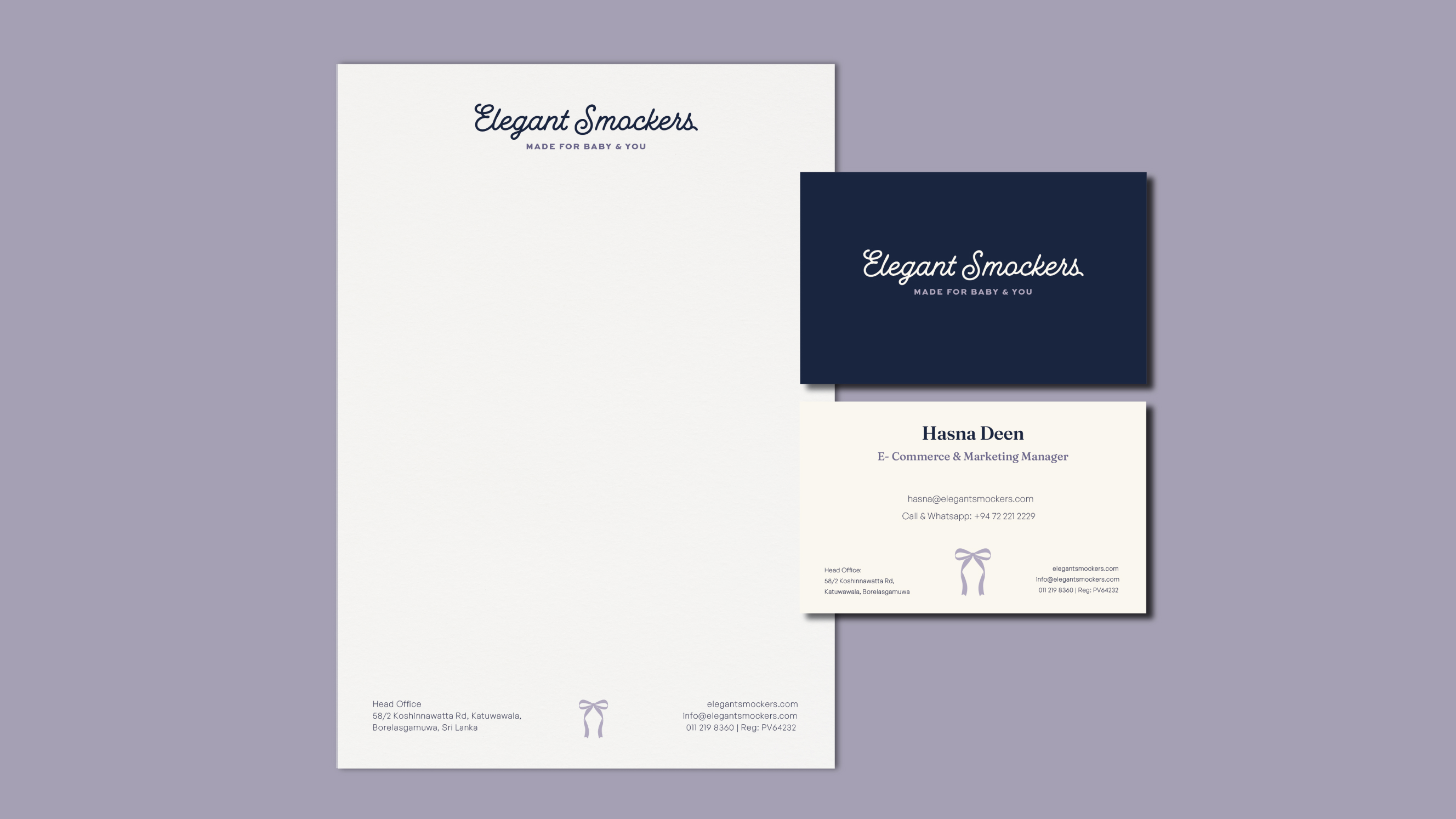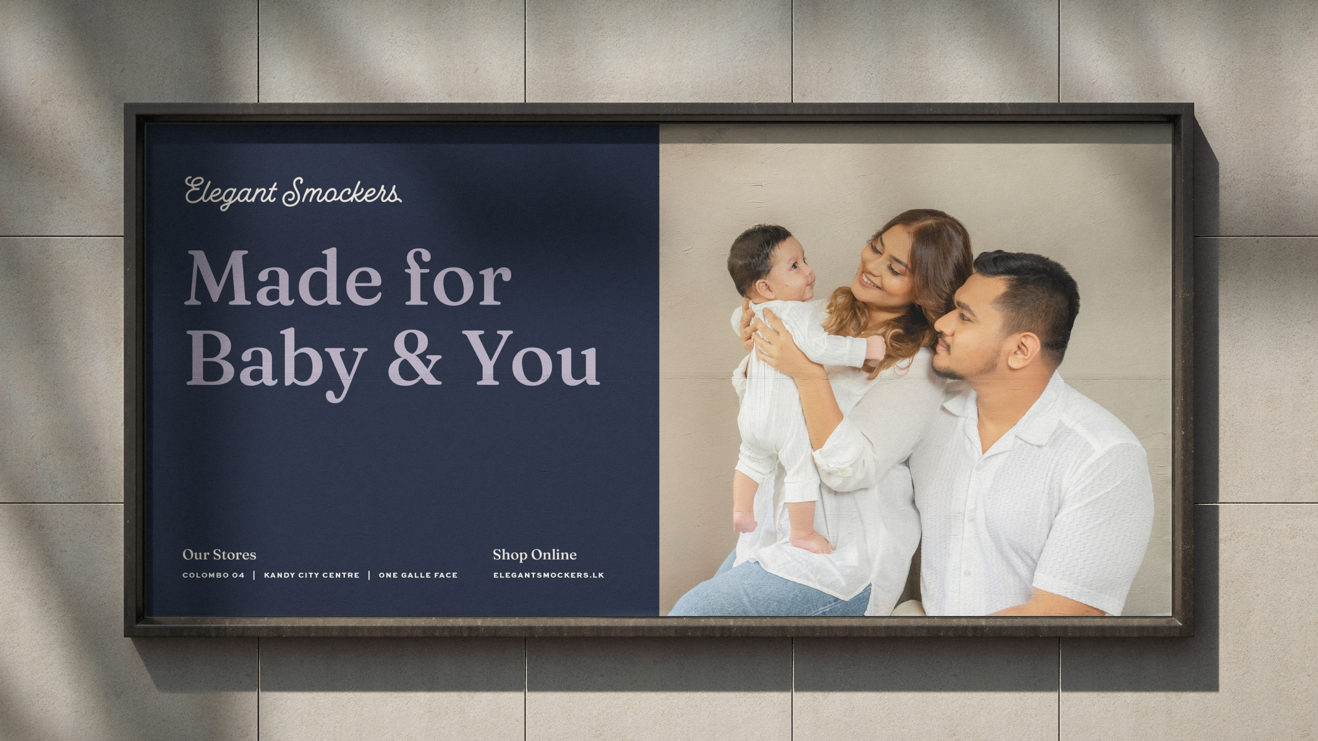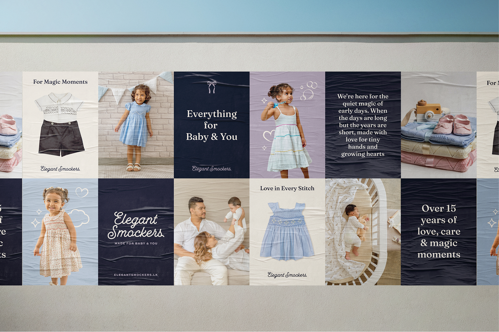 Elegant Smockers partnered with us to unify and reposition their brand as a premium baby store with a recognisable identity, having experienced a wave of similar stores opening in the market. From humble beginnings hand-smocking garments in the founder’s kitchen, the brand has grown into three retail locations and a 15 year legacy supported by 200-300 home-based artisans. Inspired by the unbreakable bond between parent and baby, the identity centres on a ribbon motif symbolising care, continuity and love. We developed a distinctive, unisex colour palette to build strong brand recognition and refined the brand’s imagery to better represent the Sri Lankan consumer. Applied consistently across retail, packaging and digital touch points, the rebrand brings warmth and cohesion to the brand’s next chapter.